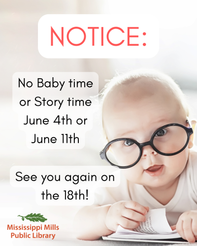 Baby time and Story time are cancelled for 4 June and 11 June. See everyone again on Wednesday, 18 June!