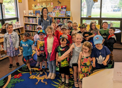 Starting the newsletter off with a lovely photo of story time kids! Steph read stories to 3 classes at the library this week – that’s a lot of happy book lovers! (photo shared with permission from teacher)