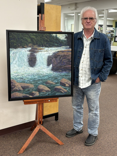 “Almonte Falls” by Blair Paul was donated to the Almonte branch on 21 May 2025. It is dedicated to the memory of his friend, Sean Egan, who lived in Almonte and lost his life on Mount Everest in 2005. Visit the library to admire this beautiful art work!