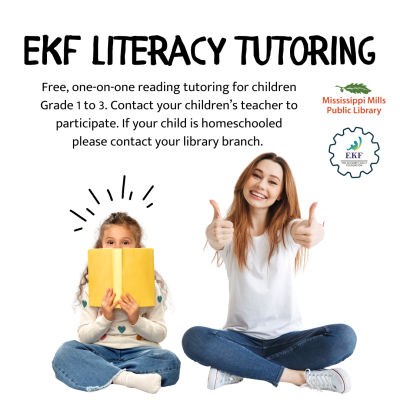 The Elizabeth Kelly Foundation (EKF) is generously funding a free one-on-one literacy tutoring program for children in Grades 1 to 3, offered at the Mississippi Mills Public Library.