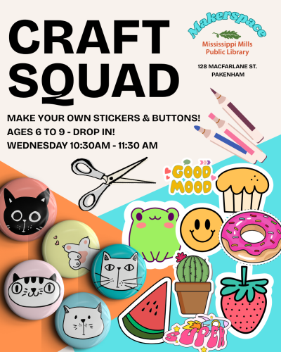 DROP-IN Craft Squad program for kids ages 6 to 9 – at the Makerspace in PAKENAHAM branch