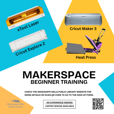 Interested in learning how to use the xTool laser engraver, Cricut or heat press? Sign up for one of our Beginner Training small group sessions to learn how to use the machines and software. Once you have completed training for one of the machines you can create your own project as part of the Makerspace Club. No experience is necessary. Register for August training: https://form.jotform.com/252184174886265