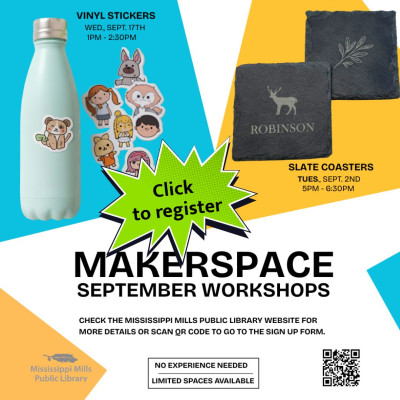Makerspace workshops at Pakenham branch! The 2 September slate coasters workshop is over & was wonderful. Spots remain for the 17 September Vinyl Stickers workshop! Register here: https://form.jotform.com/252016125959256