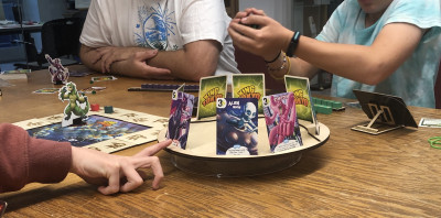(above: a few of the board game builders playing their creations at the end-of-board game makers’ camp party at Pakenham branch!)