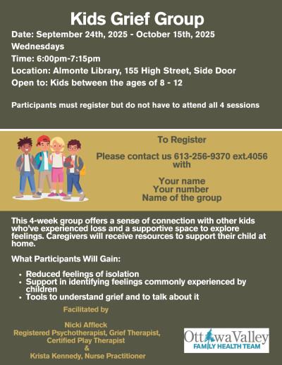 Kids Grief Group – facilitated by Nicki Affleck & Krista Kennedy of Ottawa Valley Family Health Team