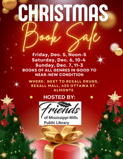 Mark your calendars, December 5, 6, & 7 the Friends of MMPL are having a Christmas book sale at the Rexall Mall at 430 Ottawa St. The sale will feature books of every genre in good to near-new condition. Most are sold individually, but some are in ready-to-go festive sets! Experience a holiday atmosphere with the Friends, purchase some wonderful Christmas gifts, and support our library!