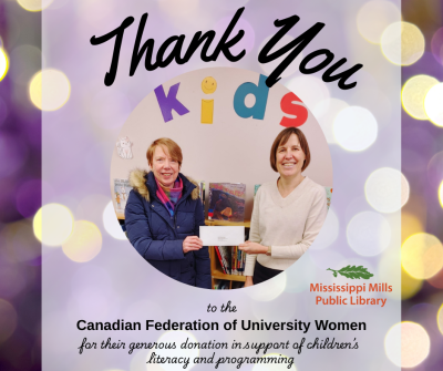 Thank You!!! We are grateful to the Canadian Federation of University Women (CFUW) for their generous donation in support of children’s literacy and programming at the library. Their contribution helps us continue offering engaging story times, creative workshops, and learning opportunities that inspire a love of reading in our youngest community members.